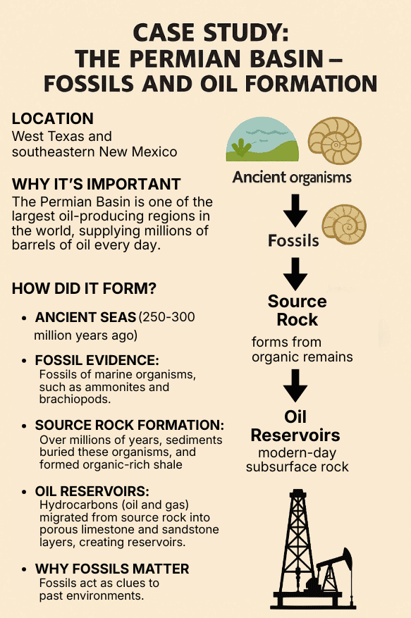 - Correlation: Fossils allow geologists to correlate rock layers across regions, helping predict where oil-bearing formations might extend underground.